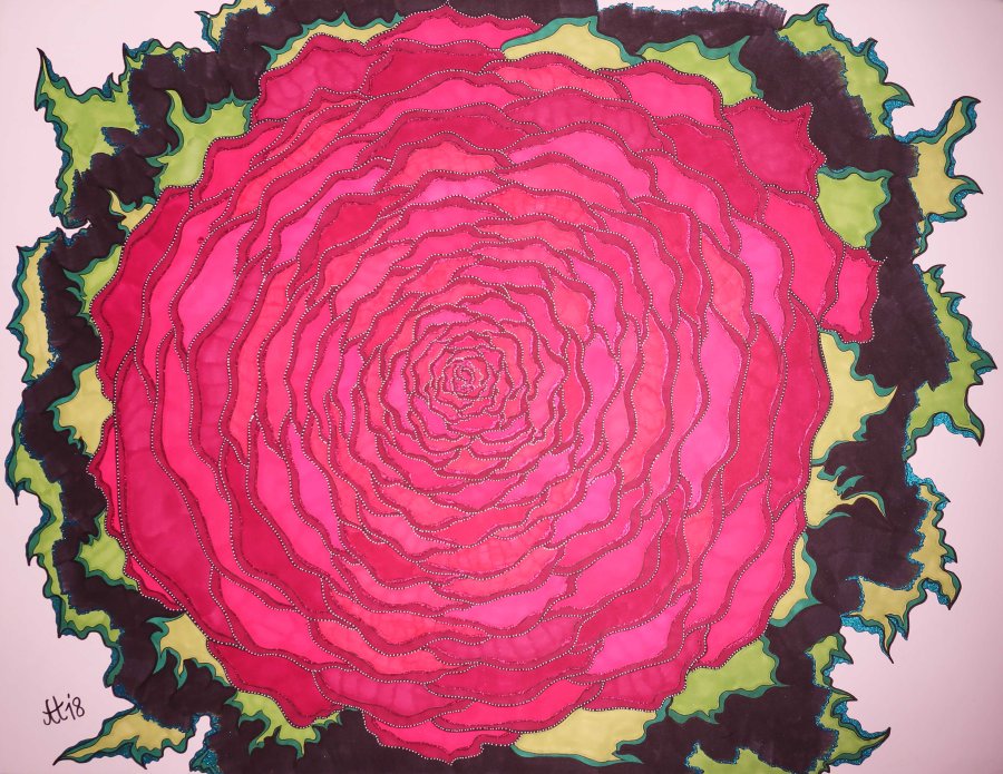 „Tiefes Rot“, 50×65, diverse Marker auf Papier, Preis auf Anfrage.