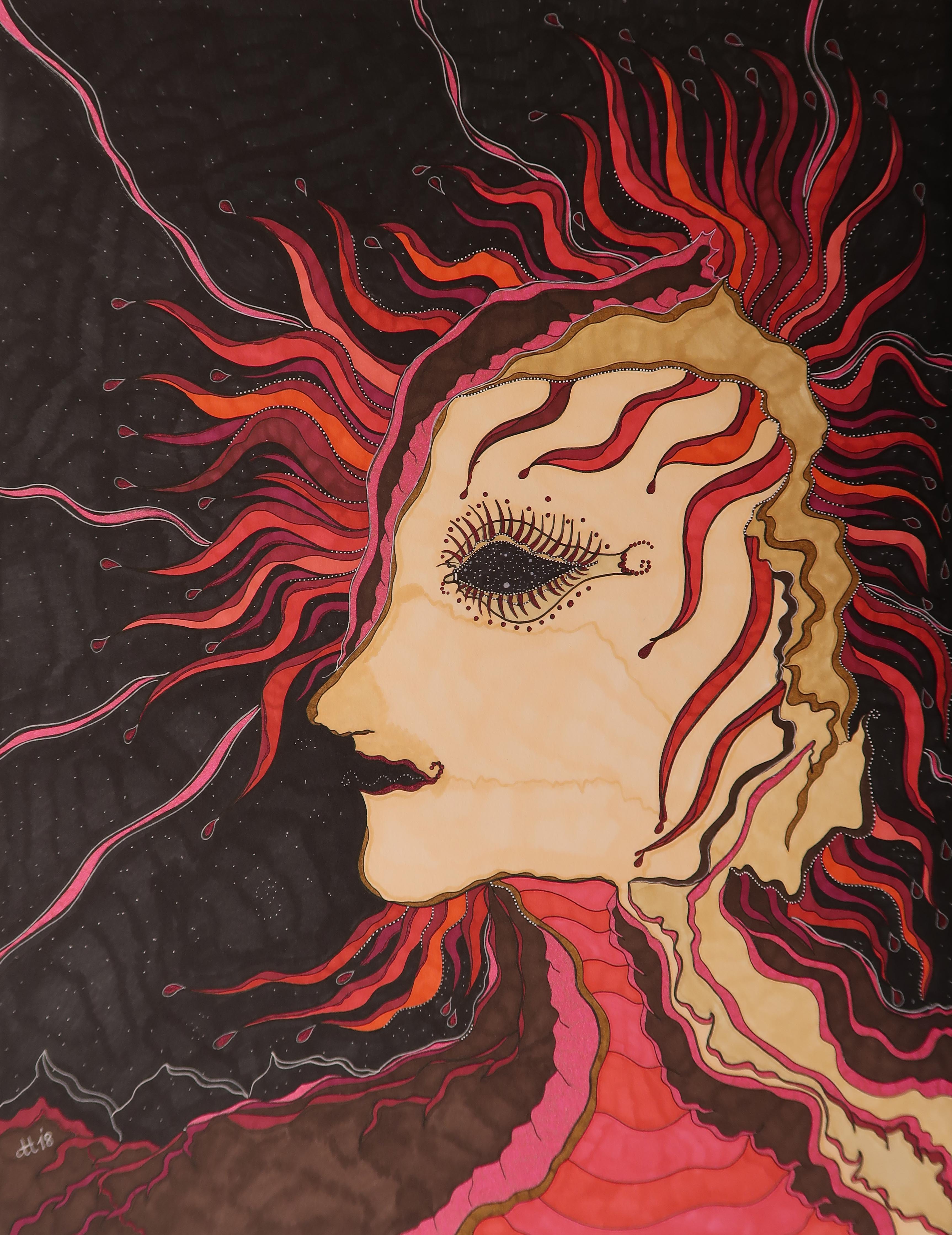 „Offengelegter Verrat“, 50×65, diverse Marker auf Papier, Preis auf Anfrage.