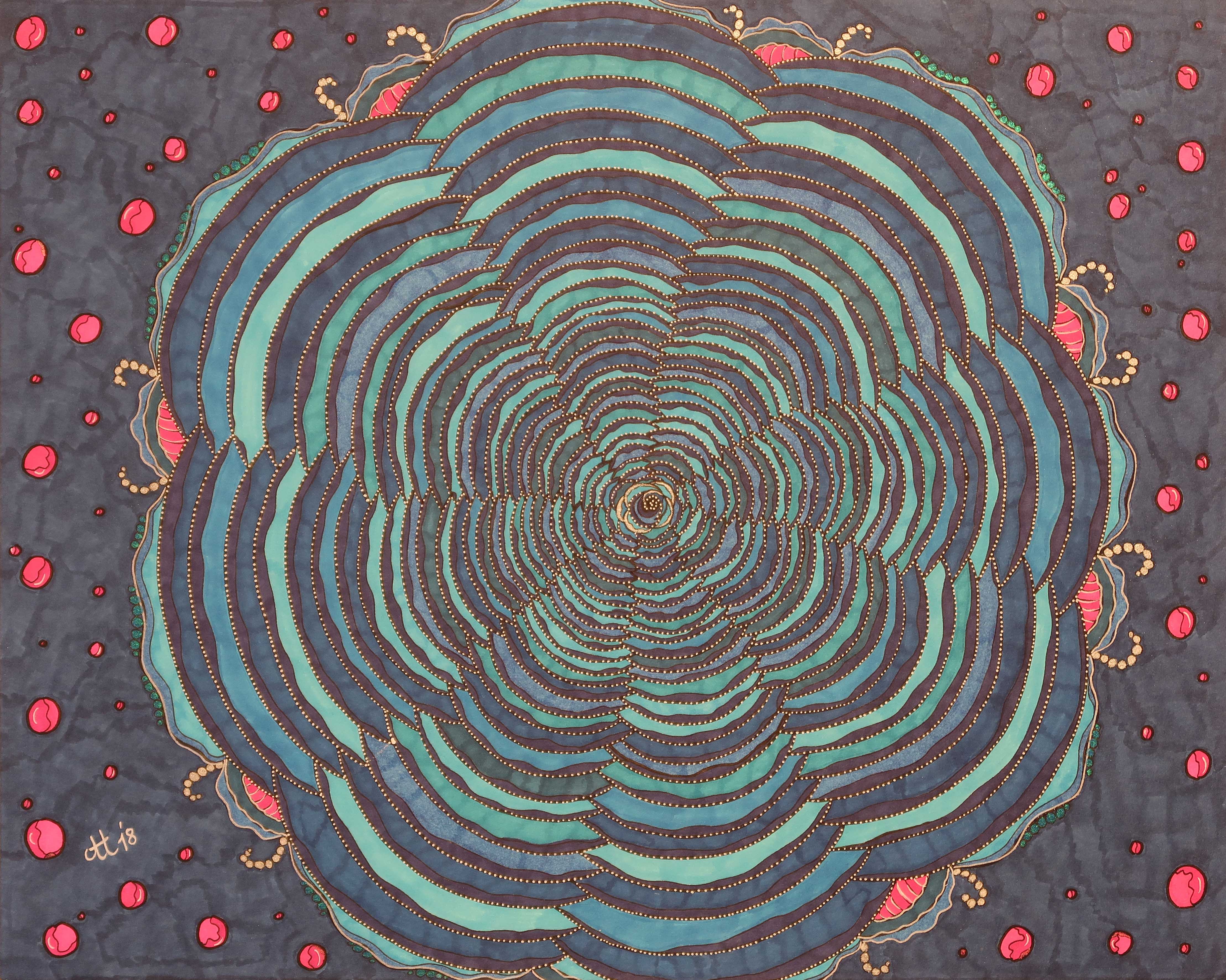 „Tiefes Blau“, 40.6×50.8, diverse Marker auf Papier, Preis auf Anfrage.