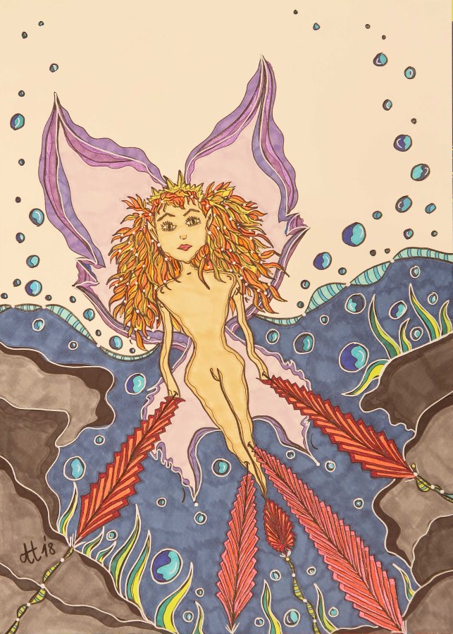 „Im Wasser gehalten“, 29.6×42, diverse Marker auf Papier, Preis auf Anfrage.