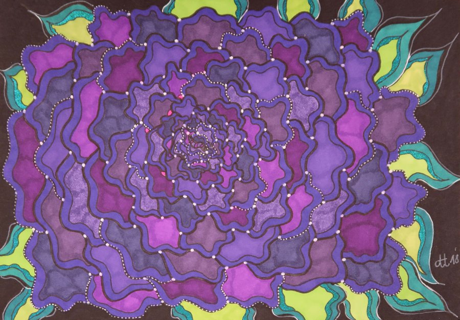 „Lila“, 17.8×25.4, diverse Marker auf Papier, Preis auf Anfrage.