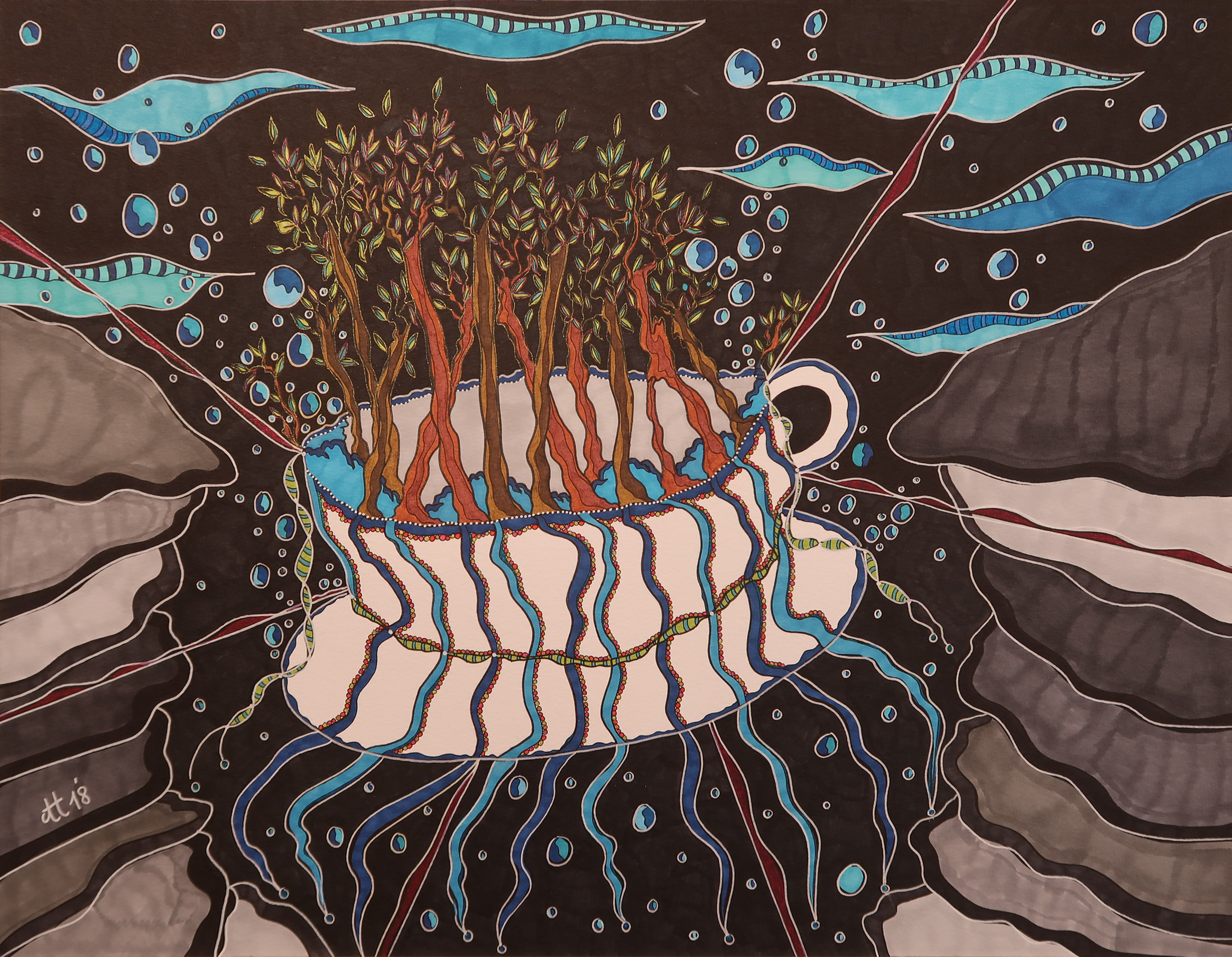 „Ein letztes bisschen Grün“, 50×65, diverse Marker auf Papier, Preis auf Anfrage.