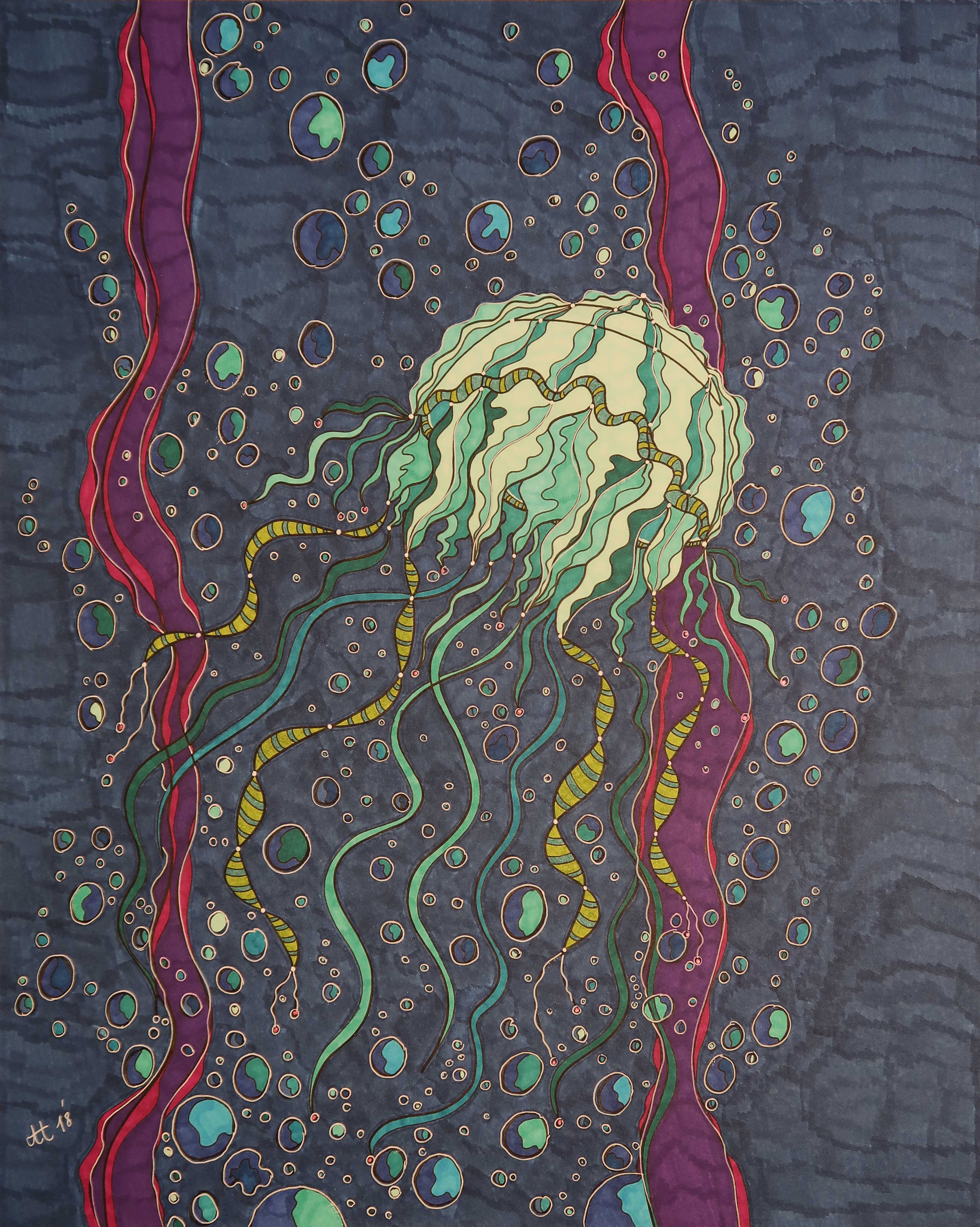 „Unter Wasser Schönheit 1“, 40.6×50.8, diverse Profi-Künstlerstifte auf hochwertigem Papier, Preis auf Anfrage.