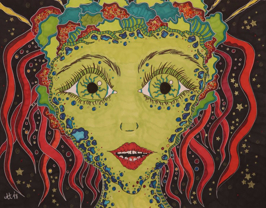 „Miss Anders“, 50×65, diverse Profi-Künstlerstifte auf hochwertigem Papier, Preis auf Anfrage.